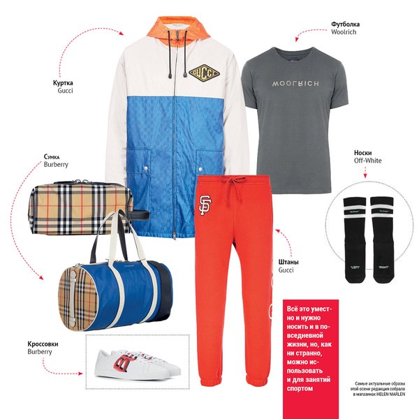 Все это уместно и нужно носить в повседневной жизни, но, как ни странно, можно использовать и по прямому назначению, то есть для занятий спортом. В конце концов, беговая дорожка или какой-нибудь марафон сегодня одно из самых популярных мест для новых знакомств и налаживания деловых контактов.