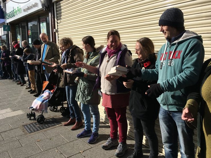 Британцы с помощью "цепочки" помогли переехать книжному магазину