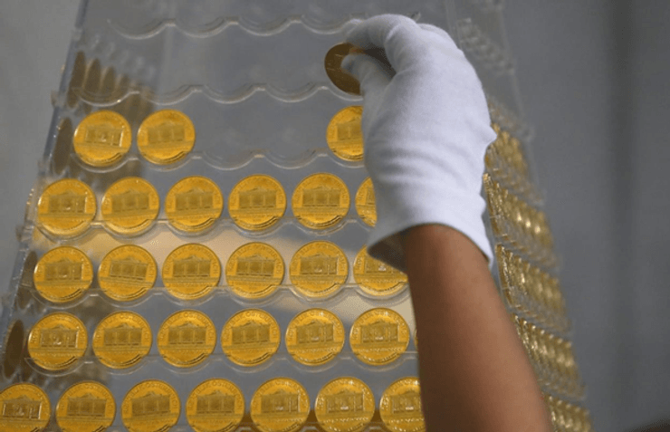Чтобы украсить всю поверхность пирамиды использовали 2018 монет. Вес конструкции - более 63 килограммов.