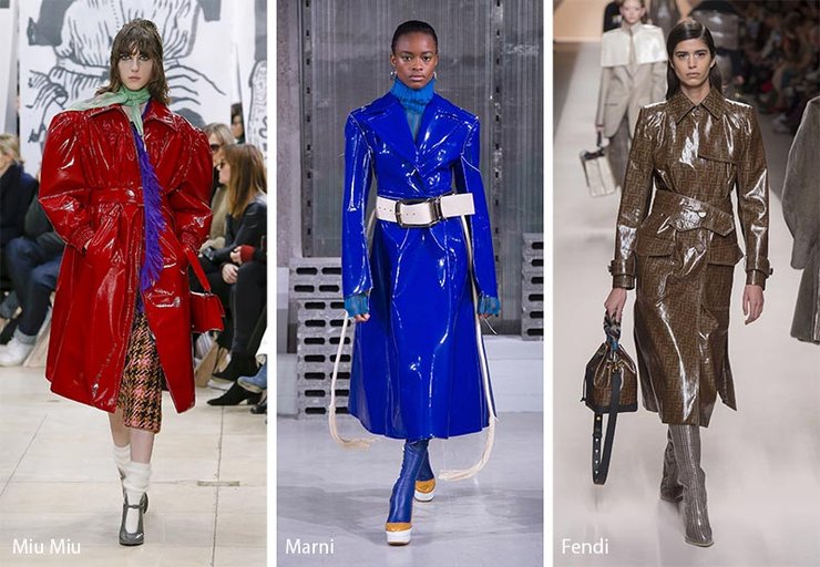 Самой модной вещью 2019-го станет полиэтиленовый плащ. Эти предметы одежды показали в новых коллекциях, посвященных будущему, такие люксовые бренды, как Maison Margiela, Fendi, Marni. Прозрачные пластики и полиэтилен крайне популярны, из них шьют как целые предметы одежды, причем и для мужчин, и для женщин, так и отдельные элементы – к примеру карманы пиджаков или детали сумок.