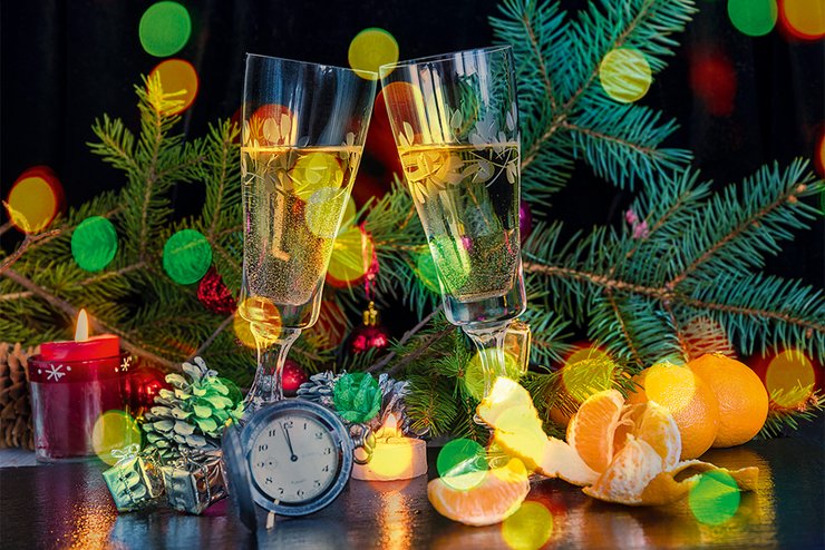 Бой курантов и празднование в целом принято сопровождать шампанским. Советский вариант этого напитка со сладковатым вкусом дрожжей появился в те же 1930-е. "Советское" шампанское имело мало общего с французским, так как изготавливалось по ускоренной технологии, без надлежащей выдержки и сведения на осадки. Но в послевоенное время, в 1954 году, появилось "Артемовское" шампанское, невероятный новогодний дефицит, который продавался разве что в закрытых для народа номенклатурных магазинах. Это шампанское отличалось от остального советского тем, что изготавливалось по классической технологии и выдерживалось на глубине более 72 м, в подземных гипсовых штольнях в Артемовске, ныне Бахмуте. Поэтому его воспринимали лучше, чем "Советское", и старались достать к новогоднему столу.