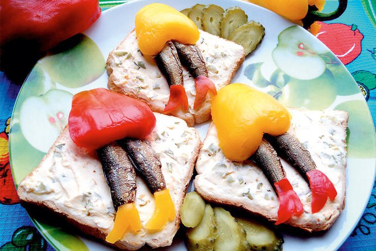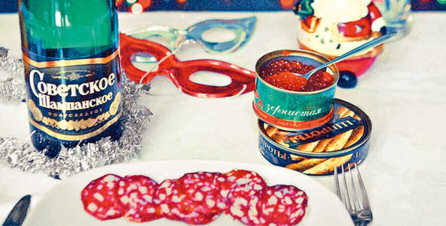Украшением советского новогоднего стола были консервы, в частности шпроты — балтийский специалитет, вошедший в моду в середине 1960-х. Эти консервы изготавливают из балтийского шпрота, мелкой рыбы семейства сельдевых, которую коптят на ольховых ветках. Шпроты выпускали в Риге еще до революции, а в послевоенном СССР процесс поставили на поток — огромные партии этих консервов выпускали на рыбоконсервном заводе в Калининградской области. Но для новогоднего стола старались достать гораздо более редкие, а потому элитные Рижские шпроты. Стоили они соответственно, 1 рубль 80 копеек за банку, столько же, сколько стоил килограмм говядины. Несмотря на это страстные поклонники и знатоки шпрот всегда старались их раздобыть и различали рыбу зимнего и летнего улова. Рыба летнего улова лежит в банке брюшком кверху, ее считали лучшей, чем "зимнюю".