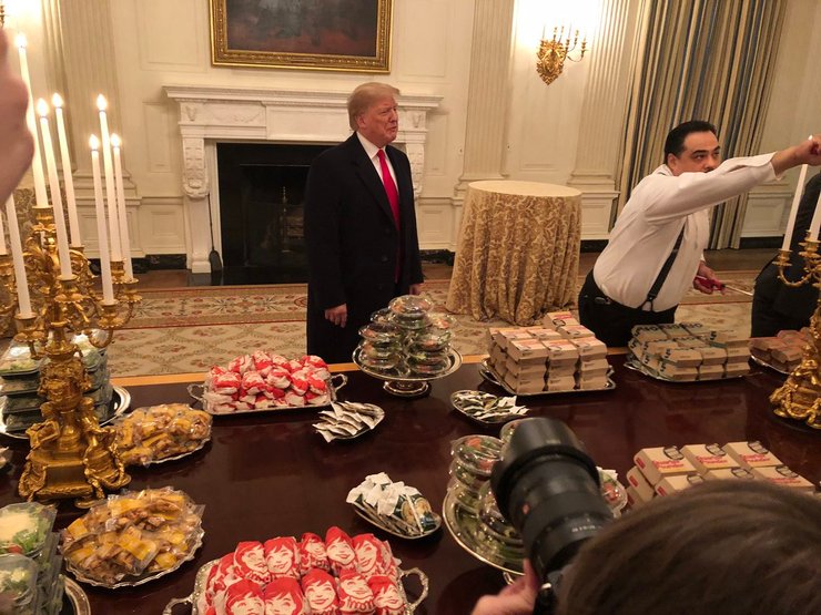 Президент США Дональд Трамп для торжественного приема футболистов команды "Clemson Tigers" заказал фастфуд за свой счет.