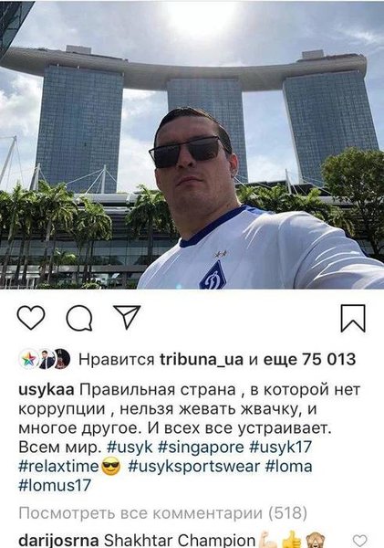 Под фотографией украинского чемпиона, на котором он позирует на фоне известной гостиницы Marina Bay Sands, Дарио Срна оставил дерзкий комментарий.