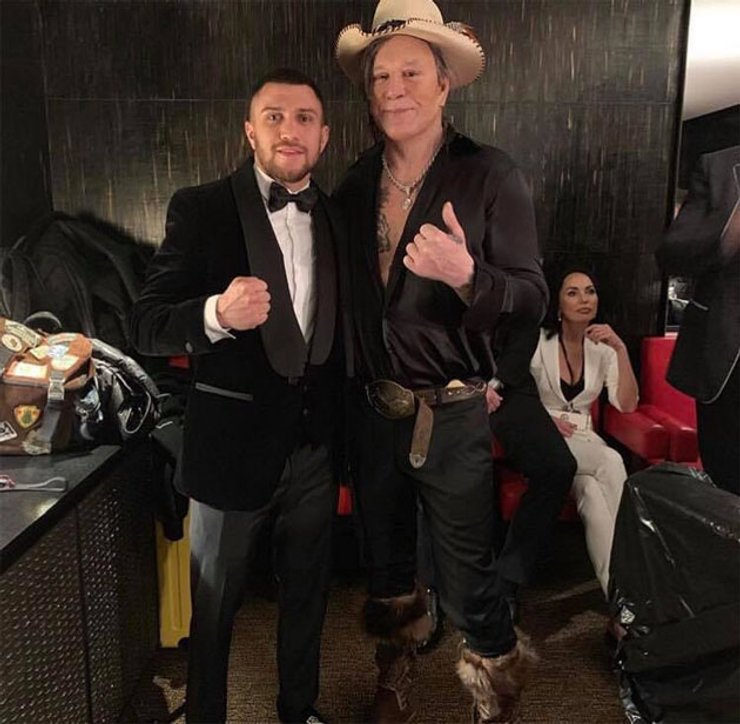 Уже на месте проведения Ломаченко встретился с еще одним гостем модельера - голливудским актером Микки Рурком. Известно, что Рурк является большим любителем бокса и сам неоднократно выходил в ринг.