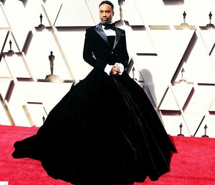 Американский актер и певец Билли Портер прибыл на церемонию вручения премии "Оскар" в пышном бархатном платье черного цвета, пишет The Hollywood Reporter.