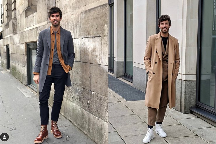 Тео ван ден Брок, редактор моды в британском GQ, сочетает классическое пальто и пиджаки свободного кроя с брюками-чиносами и высокими кроссовками или ботинками милитари. При этом выбор цветов сфокусирован на спокойных природных тонах – бежевом, коричневом, всех оттенках серого и бордовом, – безусловных лидерах цветовых трендов мужской моды нынешнего сезона.