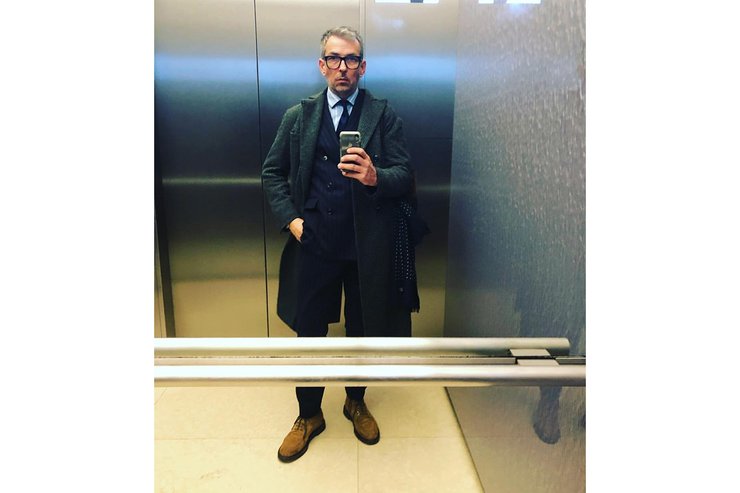 Ник Салливан, редактор британской версии Esquire, отдает предпочтение классическому двубортному пиджаку и предлагает сочетать его с таким же классическим пальто свободного кроя из тонкой шерсти приглушенно-зеленого цвета, популярного в 1960-х и 1990-х годах. Выбор обуви снова сделан в пользу замши натурального оттенка.