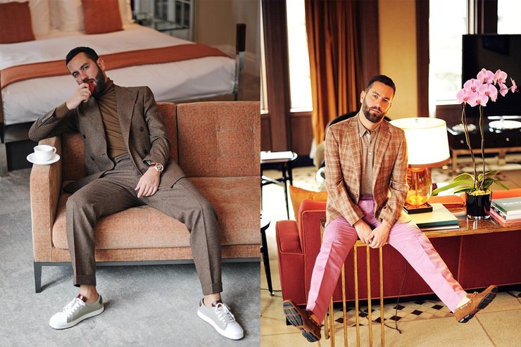 Во многом ему вторит Мэттью Зорпас, основатель TheGentelmanBlogger и модный консультант знаменитостей. Правда, в его гардеробе можно встретить прямые отсылки к 1990-м, такие как широкий клетчатый пиджак, который блогер сочетает с широкими брюками яркого оттенка розового.