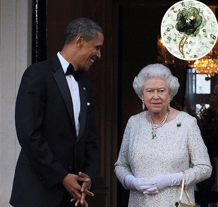 Так, во время одного из визитов супруги Обама подарили королеве брошь в виде цветка. И она украсила ею свое платье во время официального приема, что было очень приятно и трогательно. Ведь на ней было столько драгоценностей, но королева не забыла и о скромном подарке.
