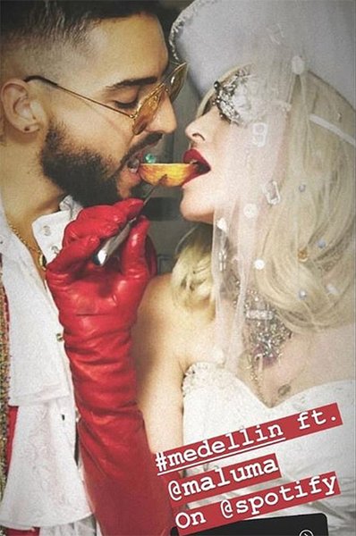 60-летняя Мадонна в образе невесты снялась в клипе на песню Medellin, которую поп-дива записала с южно-американским певцом Малумой.