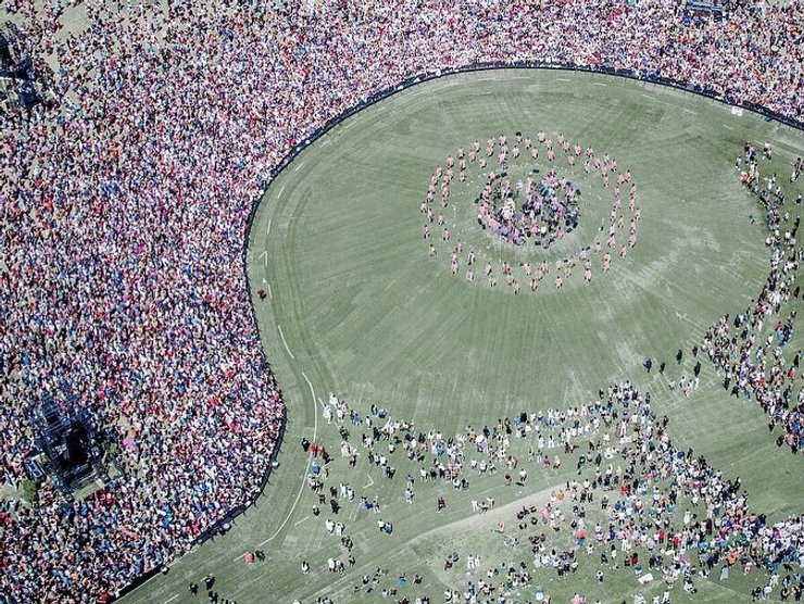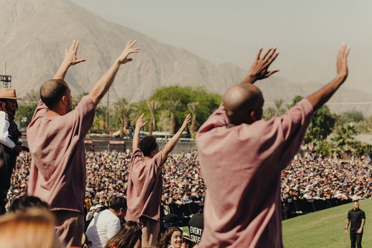 Выступление рэпера собрало почти 50 тысяч зрителей. Ранее он должен был выступать на фестивале, быть хедлайнером, но у него случился конфликт с организаторами: исполнитель хотел оборудовать площадку огромным куполом, организаторы это предложение отклонили. В итоге Уэст отменил выступление и хедлайнером Coachella стала певица Ариана Гранде.