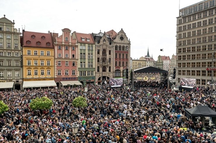 Любители игры на гитаре, которые собираются во Вроцлаве уже 17 раз подряд, традиционно совместно исполнили песню "Hey Joe" Джимми Хендрикса.