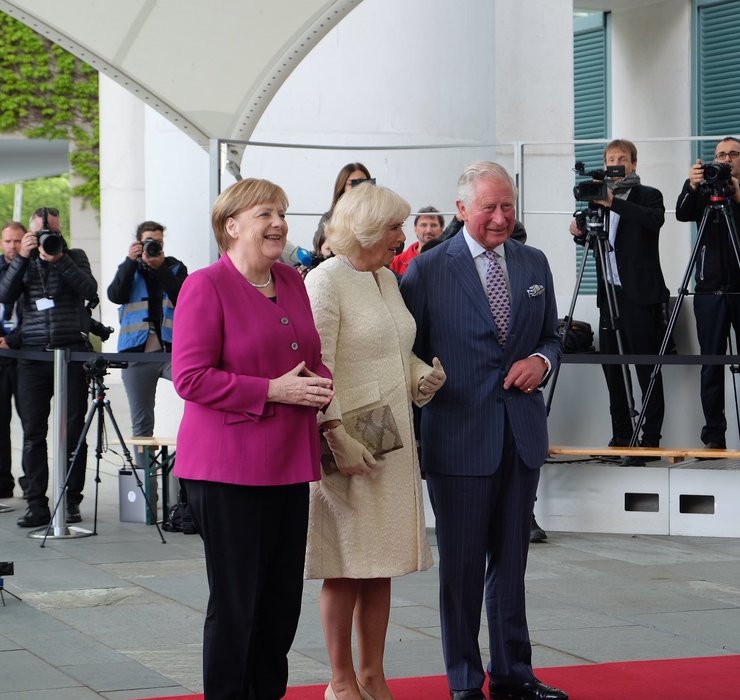 Ангела Меркель встречала принца Чарльза и его супругу Камиллу Паркер-Боулз у Федеральной Канцелярии и сразу же поздравила принца с рождением четвертого внука, а тот ответил, что с нетерпением ждем встречи с малышом. Пока троица позировала фотографам, из толпы Чарльзу крикнули: "Поздравляем, дедушка!".