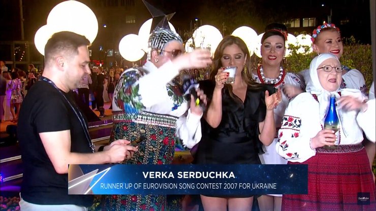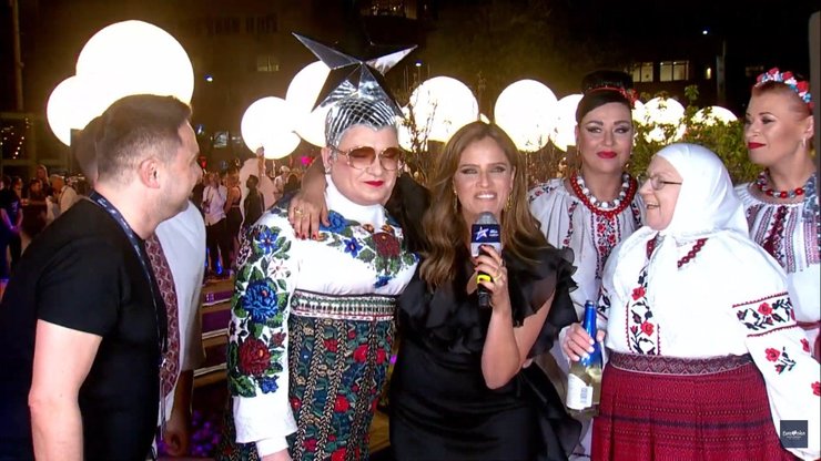 На ковровой дорожке Верка Сердючка появилась весьма эффектно! По традиции певицу сопровождала ее сценичная мама, которая пришла на мероприятие с бутылкой шампанского.