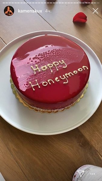 При заезде пару приветствовали сладким сюрпризом – тортом с надписью "Honeymoon".