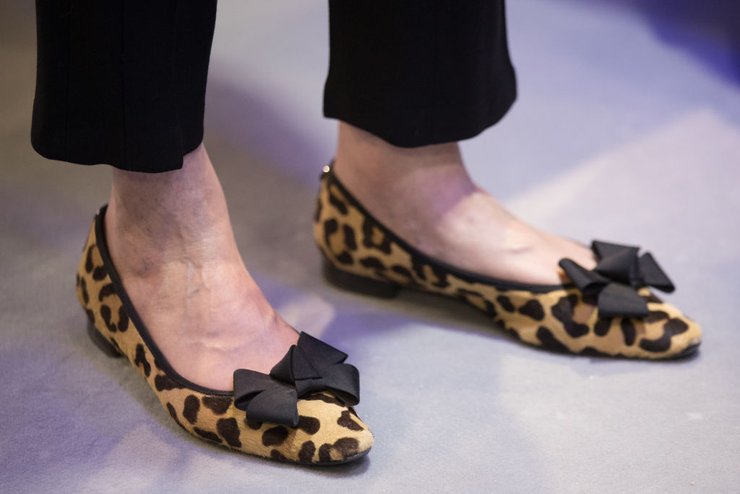 Отдельной главы в "книге по стилю" Терезы Мэй заслуживает ее коллекция туфель. По признанию самой госпожи премьер-министра, в ее гардеробе, по скромным подсчетам, примерно 80 пар. Политик всегда утверждала, что стиль ее туфель не отражает сути личности. Выбор многочисленных забавных туфель призван настроить прессу и коллег на шутливый лад. Именно этим, по ее словам, обусловлено количество леопардовых лодочек в гардеробе. На вопрос, что она любит больше всего на свете, Тереза Мэй отвечала: "Что? Обувь! Кого? Моего мужа Филиппа".