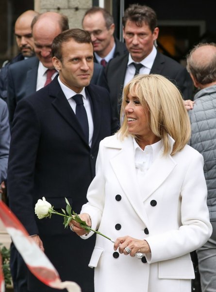 Президент и Первая леди пожимали руки, фотографировались со всеми желающими, а Бриджит даже подарили белую розу. Она прекрасно сочеталась с ее белоснежным пальто, которое мадам Макрон выбрала для визита на избирательный участок.