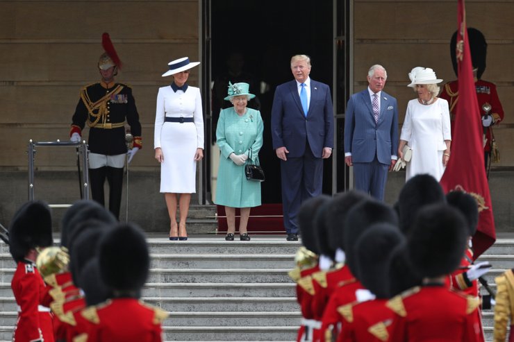 Вечером президента США ждал роскошный гала-ужин в Букингемском дворце. Готовились к нему заранее. Приглашены были 170 гостей. Для визита Мелания выбрала белоснежное платье от Dior и дополнила образ длинными перчатками. Интересно, но королева, герцогиня Корнуолльская и Кейт Миддлтон также предпочли белый цвет для вечерних платьев, а Тереза Мэй – черный.