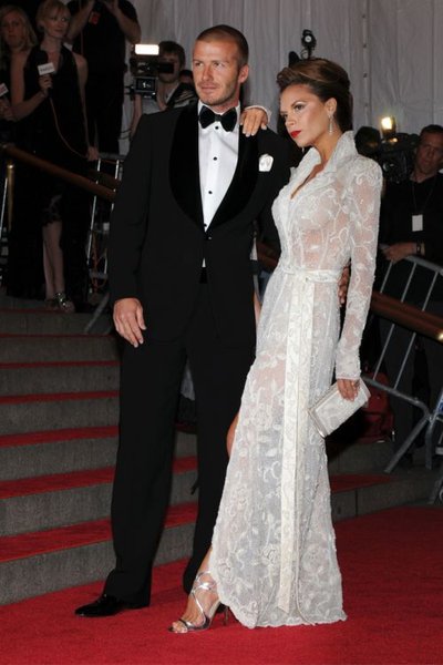 В 2008 году пара демонстрировала свое видение Супергероев на Met Gala. Тогда модные критики решили, что британец Бэкхем явно изображает Джеймса Бонда.