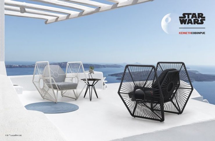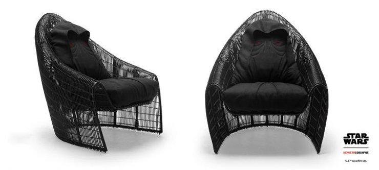 Кресла сделаны из ротанга и имеют вполне узнаваемые формы: космические корабли имперских штурмовиков, и головы героев, пребывающих на темной стороне Силы - Дарта Вейдера и Дарта Сидиуса, более известного, как император Палпатин.
