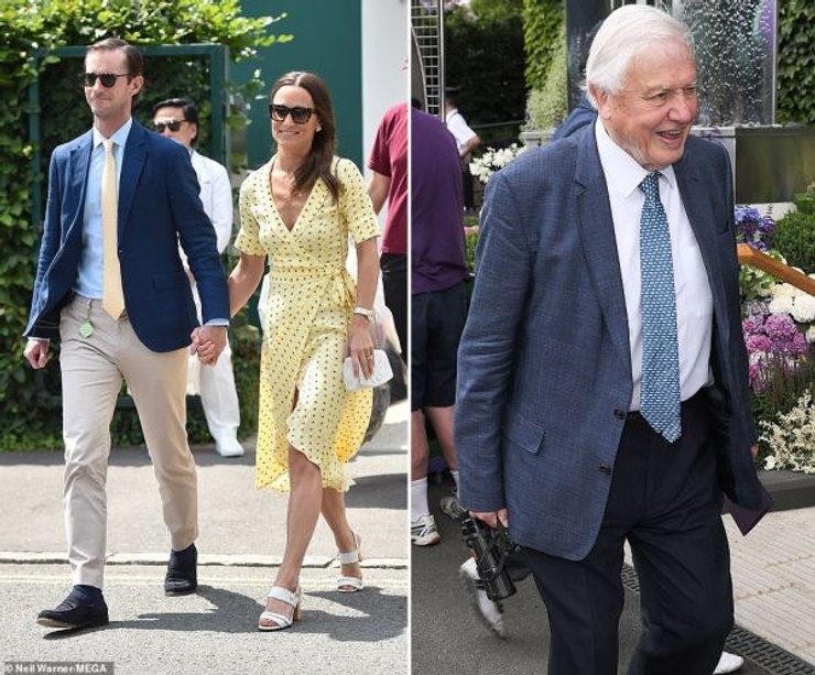 Также Всеанглийский клуб лаун-тенниса и крокета в Уимблдоне, где проходят матчи, посетили британский телеведущий Беар Гриллс и 93-летний пионером документальных фильмов о природе сэр Дэвид Аттенборо.