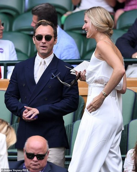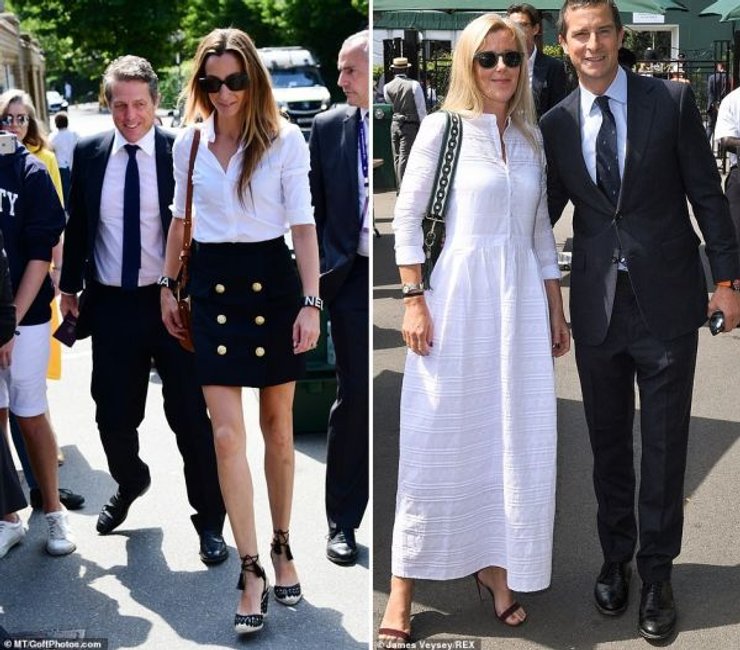 Сегодня встречаются Новак Джокович и Роберто Баутиста-Агут, а через несколько часов - Рафаэль Надаль и Роджер Федерер. Это зрелище не смогли пропустить звезды первой величины. На переполненных трибунах фотографы заметили актера Джуда Лоу с супругой Филиппой Коан и 58-летнего актера Хью Гранта с его 40-летней женой Анной Эберштейн.