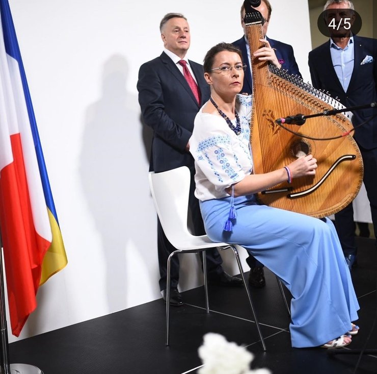 Посол Франции в Украине Изабель Дюмон в вышеванке сыграла для присутствующих на бандуре композицию "Реве та стогне Дніпр широкий..."