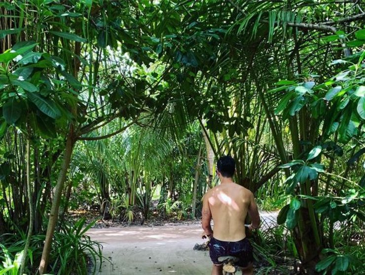 На фотографиях пара продемонстрировала, что медовый месяц в самом разгаре: они катаются на велосипедах по джунглям, загорают и ужинают с видом на океан.