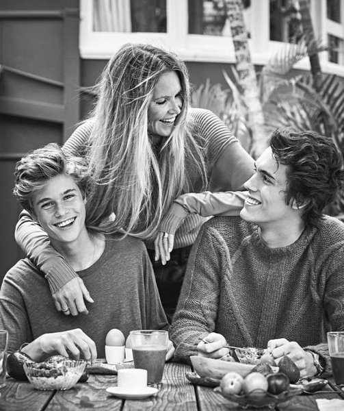 Супермодель Эль Макферсон и двое ее взрослых сыновей стали главными героями августовского номера журнала Vogue Australia.