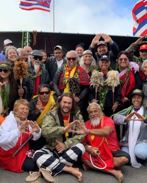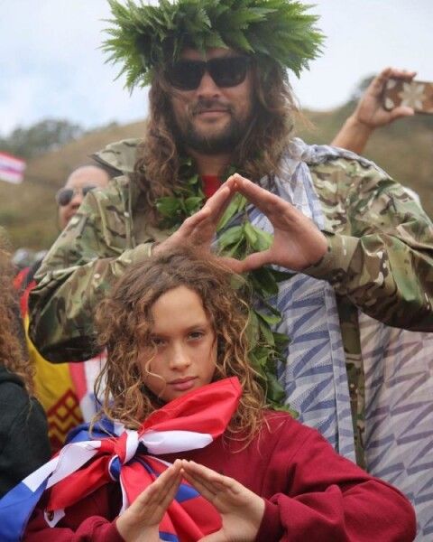 Момоа прибыл на Гавайи вместе с детьми, и даже принял участие в священном обряде у подножия Мауна-Кеа.