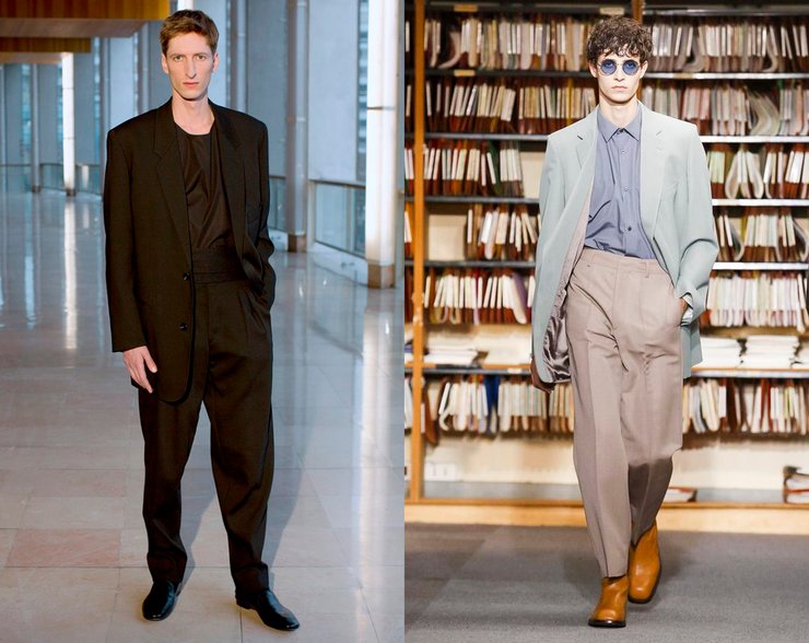 Здесь мы видим обратную тенденцию, если сравнивать мужские и женские подиумные шоу осень-зима 2019. Такой любимый девушками оверсайз постепенно уходит из ключевых трендов женских коллекций, уступая место более требовательным приталенным моделям пиджаков. В то время как мужчинам, наоборот, предлагают ощутить на себе все блага этого кроя жакетов. Правда, в случае представителей сильной половины человечества пиджак оверсайз не скрывает физические несовершенства фигуры, а способен, наоборот, подчеркнуть лишний вес своего обладателя. Зато с брюками будет все проще: они должны просто быть.