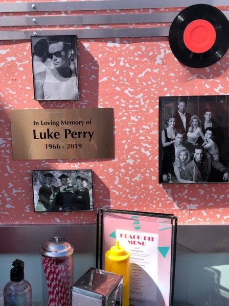 Почтили создатели заведения Peach Pit и память Люка Перри, который скончался после инсульта в начале марта. В кафе установили стенд, посвященный актеру.