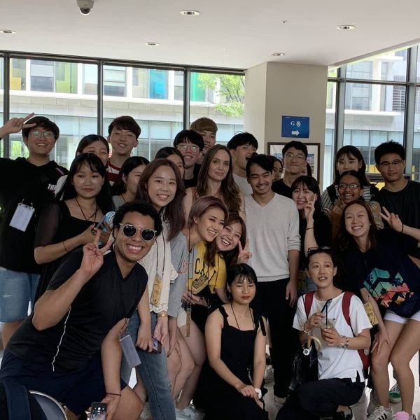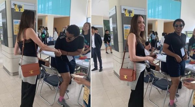 Джоли похвалила университет и предположила, что первокурсникам в нем понравится. Во время разговора Анджелины со студентами Мэддокс стоял рядом с мамой. Перед уходом актриса согласилась на одну групповую фотографию.