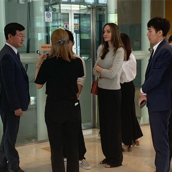 "Сегодня я уезжаю. Сегодня оставлю Мэддокса здесь. Все понимаю и стараюсь не плакать", - ответила актриса на вопрос о сыне и своем пребывании в Южной Корее.