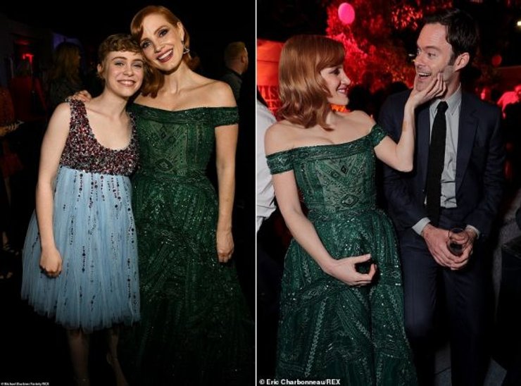 Джессика Честейн и София Лиллис, сыгравшие Беверли Марш в фильме "Оно". Джессика и Билл Хейдер, сыгравший роль Ричи Тозиера