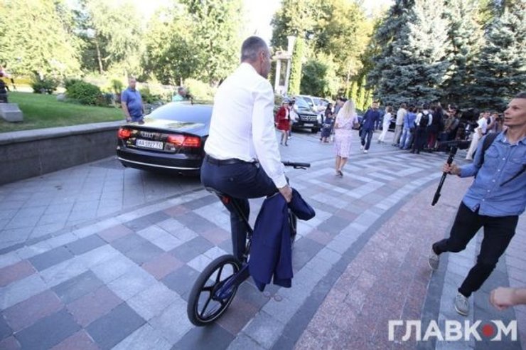 Мэр подкатился под самые двери, пообщался с журналистами и зашел в здание. Где он оставил веслосипед: укатил с собой в парламент, или же припарковал у входа – неизвестно.
