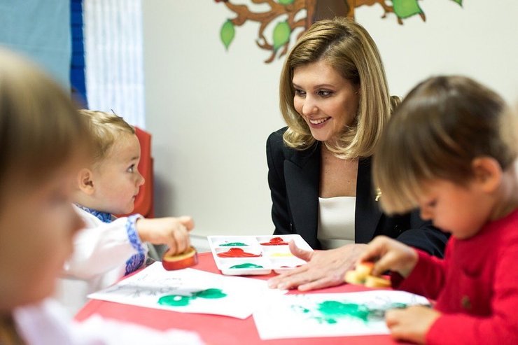 Также в этот день Елена Зеленская посетила, уже без супруга, детский украинский центр "Барвинок", где общалась с детьми.