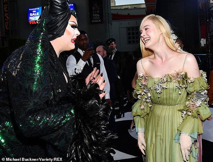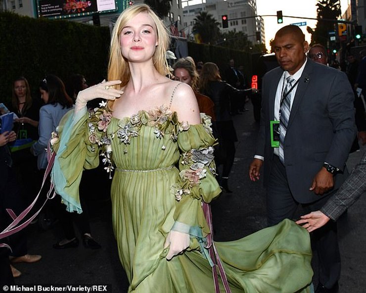 Эль Фаннинг, исполнившая в фильме роль принцессы Авроры, выбрала для премьеры "сказочное" струящееся платье, украшенное цветами и вышитыми каплями крови. Gucci создал наряд специально для премьеры.