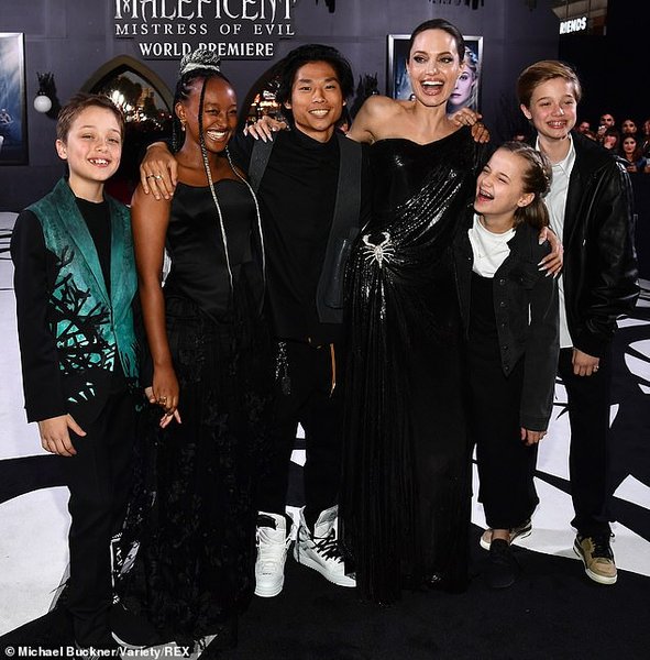 Актрису сопровождали ее дети: пятнадцатилетний Пакс, тринадцатилетняя Шайло, тринадцатилетняя Шайло, одиннадцатилетние близнецы Вивьен и Нокс, а также четырнадцатилетняя Захара. Не было только восемнадцатилетнего Мэддокса, - юноша сейчас учится в университете в Южной Корее.