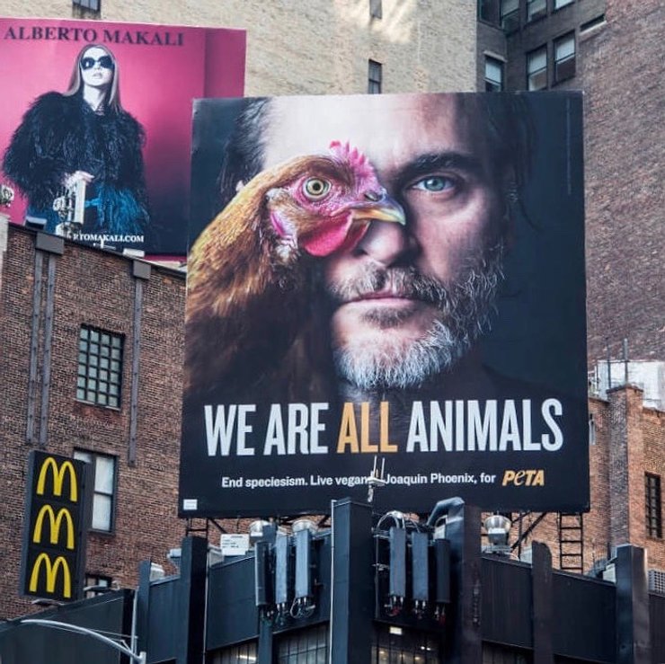 Актер Хоакин Феникс, который исполнил главную роль в фильме "Джокер", снялся для постера рекламной компании РЕТА, выступающей в защиту животных. Об этом пишет Totally Vegan Buzz.