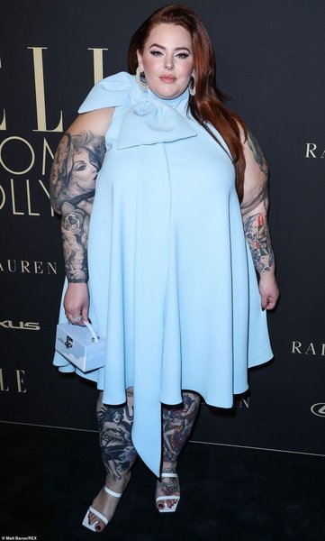 В сером и ассиметричном пришла Зендая, а известная plus-size модель Тесс Холидей вообще выбрала нежно-голубое свободное платье, открывающее все ее татуировки.