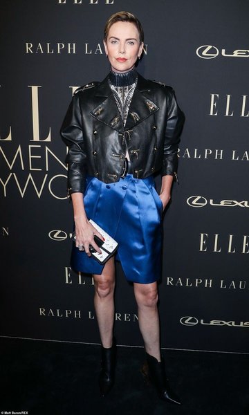 Но черный и вечерний дресс-код поддержали не все селебрити. Так, Шарлиз Терон пришла в экстравагантном комплекте от Louis Vuitton, состоящем из куртки-косухи и атласной мини-юбки.