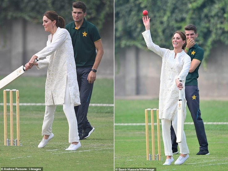 Позже герцогиня переобулась и сыграла вместе с мужем крикет в поддержку программы DOSTI (дружба на урду) Британского Совета.