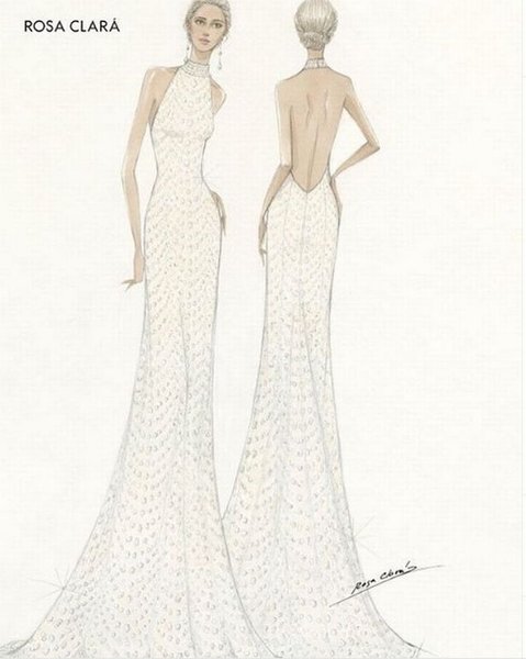 Свадебное платье для невесты создал дизайнерский дом Rosa Clara. Простой и элегантный наряд из шелка и французского кружева Мария дополнила фатой и небольшими серьгами с бриллиантами.