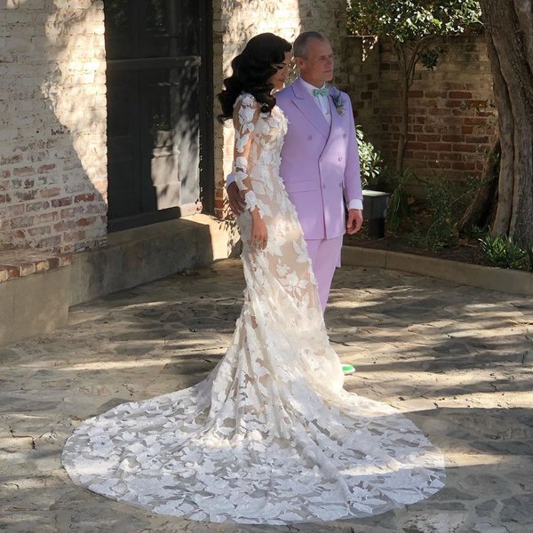 Пока подробностей известно немного, а в Сети появилось только две фотографии. На женихе был нежно-сиреневый костюм с бутоньеркой и галстуком-бабочкой. На невесте – белое платье с аппликациями.