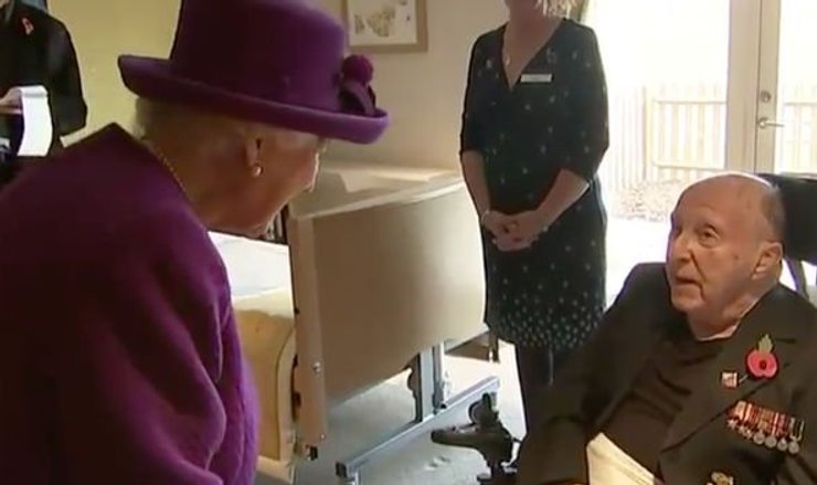 Королева встретилась с жителями поселка, причем со старейшим его обитателем – 100-летним Джоном Риггсом, ветераном Второй мировой. Солдат воевал в Центральной Бирме и охранял, кроме всего прочего, железнодорожные пути.