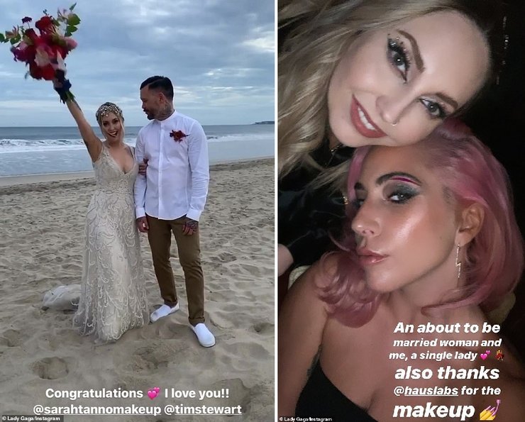 Оскароносная певица Леди Гага побывала на свадьбе лучшей подруги – своей визажистки Сары Танно. И ради торжества Гага не только оделась в розовое, как подружка невесты, но и поменяла цвет волос. Об этом пишет Daily Mail.