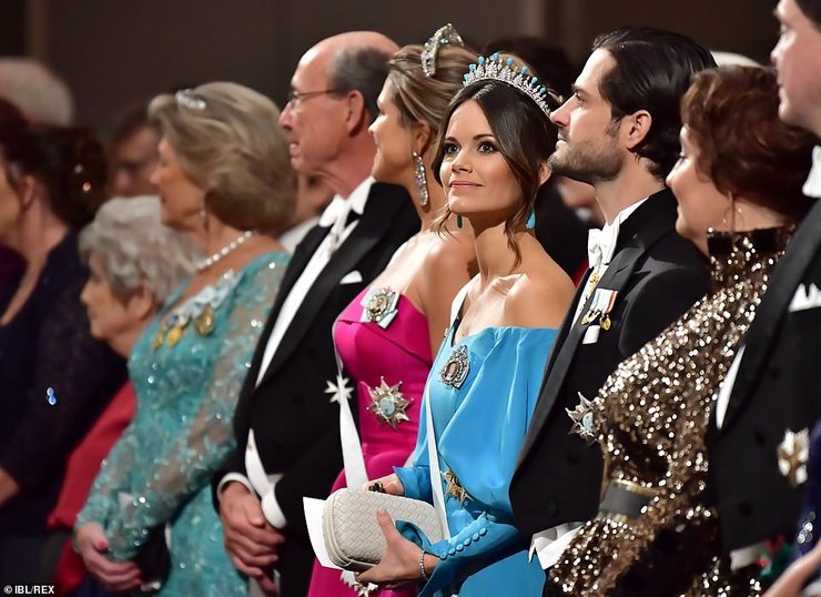 Традиционно, церемонию награждения посетила королевская семья Швеции. Королева Сильвия, принцессы Мадлен, София и Виктория блистали в фамильных драгоценностях – тиарах и колье.