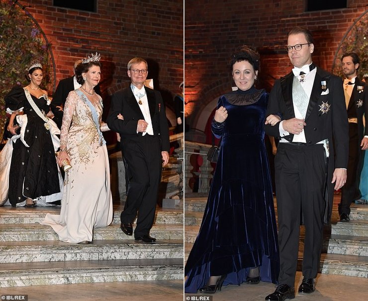 Королева Сильвия и Карл-Хенрик Хельдин, председатель Нобелевского комитета; Ольга Токарчук и принц Даниэль